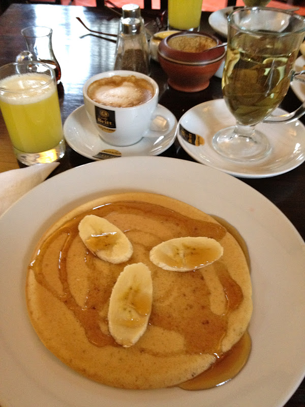 While staying in the quaint and picturesque town of Ollantaytambo, my mom and I stayed in the most adorable and cozy Bed&Breakfast. With fresh breakfast in the morning right before I departed on my journey to Machu Picchu I indulged in fresh banana pancakes, fresh squeezed pineapple juice, Cafe au Lait, and of course Mate de Coca. A fresh and filling breakfast to start my day.